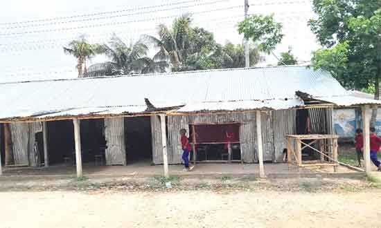 শিক্ষার্থীরা জানায়, বিদ্যালয়ের চারপাশে ফাঁকা এবং সামনে বালুভর্তি মাঠ থাকায় গরমের দিনে তাদের ক্লাসে বসে থাকতে কষ্ট হয়। বাতাসে গরম হল্কার সঙ্গে উড়ে আসে ধুলাবালি। ফ্যান চললেও তাতে গরম কমে না। আবার বর্ষা মৌসুমে গোলপাতার ছাউনি চুইয়ে পানি পড়ে ক্লাসে। বছরের পর বছর ধরে এভাবেই চলছে পাঠদান। শিক্ষকদের বসা ও দাপ্তরিক কাজের জন্য মাঠের এক কোনায় নির্মাণ করা হয়েছে কাঠ ও টিনের একটি ছোট ঘর। সেখানেও তীব্র গরমে অতিষ্ঠ হয়ে পড়েন শিক্ষকরা। বিদ্যালয়ের সমস্যার কথা উপজেলা শিক্ষা কর্মকর্তা ও উপজেলা প্রশাসনকে জানালেও কোনো সমাধান হয়নি বলে জানিয়েছে বিদ্যালয় কর্তৃপক্ষ।