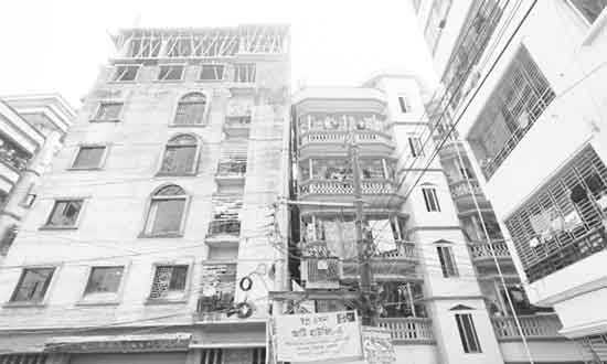 সিদ্ধিরগঞ্জ (নারায়ণগঞ্জ) : সিদ্ধিরগঞ্জের হিলাঝিল এলাকায় হেলেপড়া ভবন -সংবাদ