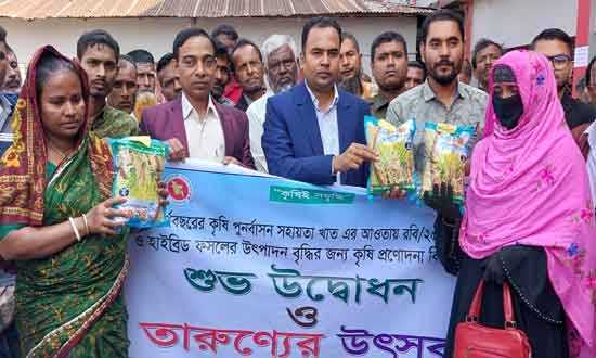 উপজেলার ১৬ টি ইউনিয়ন ও পৌরসভার ১৭শ’ কৃষকের মাঝে ২ কেজি করে হাইব্রীড ধানের বীজ। এছাড়াও ২শ’ কৃষকের মাঝে ৫ কেজি করে উফশী বীজ, ১০ কেজি ডিওপি ও এমওপি ১০ কেজি এমওপি সার বিতরণ করা হয়েছে।