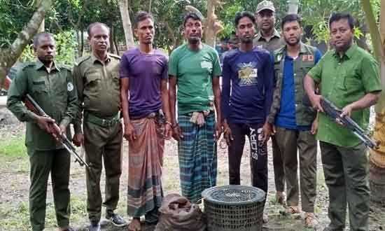 বন বিভাগ সূত্রে জানা যায়, সুন্দরবনের শরণখোলা রেঞ্জের কচিখালী অভয়ারণ্য দুধরাজ খাল এলাকায় গোপনে কাঁকড়া ধরছে এমন সংবাদে শরণখোলা স্টেশন কর্মকর্তা মো, খলিলুর রহমান নেতৃত্বে রক্ষীদের একটি দল ওই এলাকায় অভিযান চালায়। এ সময় বনরক্ষীরা দুটি ট্রলার, শতাধিক চারুসহ ৪ জেলেকে আটক করে। আটককৃত জেলেরা হল বরগুনা জেলার পাথরঘাটা উপজেলার হোগলা পাশা গ্রামের জীবন মৃধা (৫৫), দশরথ মিস্ত্রি (৪০), রিপন মৃধা (৫০) ও ফরিদ শেখ (৩৩)। আটককৃতদের বিরুদ্ধে ২৩ নভেম্বর সকালে বন আইনে মামলা দায়ের করে বাগেরহাট জেল হাজতে প্রেরণ করা হয়েছে।