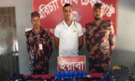 কক্সবাজারের উখিয়ায় ৪০ হাজার বার্মিজ ইয়াবাসহ সাফায়েত উল্লাহ (২৭) নামের নৌবাহিনীর এক ভুয়া সদস্যকে আটক করেছে বর্ডার গার্ড বাংলাদেশ (বিজিবি)। গতকাল সোমবার সকাল সাড়ে ১১টার দিকে উপজেলার মরিচ্যা চেকপোস্টে রামু ব্যাটালিয়ন (৩০ বিজিবি) এ অভিযান পরিচালনা করে।