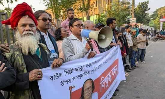 সিলেট : বাউল শিল্পীর মুক্তির দাবিতে মানববন্ধন -সংবাদ