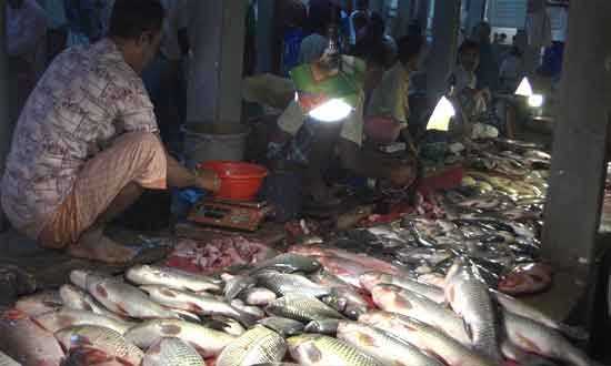 নেত্রকোণা : বাজারে ব্যবসায়ীরা দেশীয় নানা ধরনের ছোট-বড় মাছ নিয়ে বসা -সংবাদ