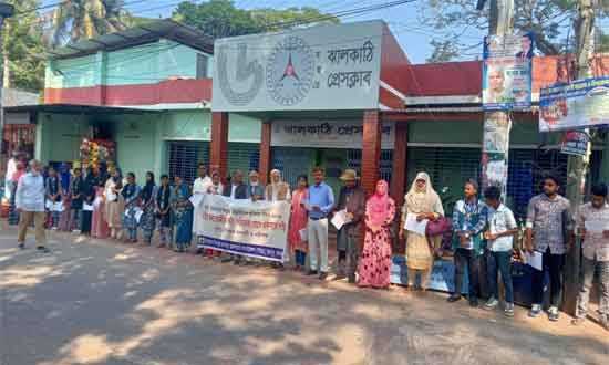 ঝালকাঠি : নারী নির্যাতনের বিরুদ্ধে মানববন্ধন -সংবাদ