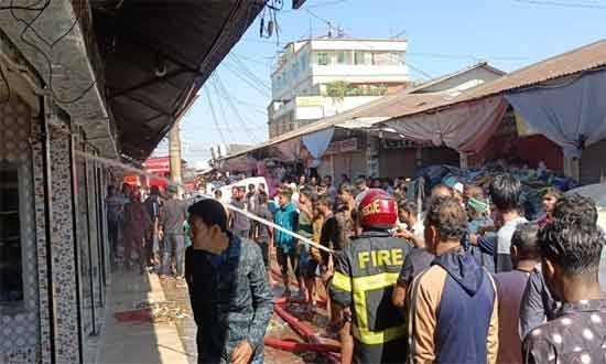 মূহুর্তের মধ্যে আগুন আশপাশে কয়েকটি দোকানে ছড়িয়ে পড়ে। পরে ফায়ার সার্ভিসের তিনটি ইউনিট ঘণ্টা দেড়েক চেষ্টার পর আগুন নিয়ন্ত্রনে আনেন।