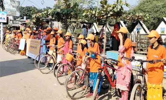 ‘নারী ও কন্যাশিশুর প্রতি সকল প্রকার ডিজিটাল সহিংসতা বন্ধ করি, একসাথে এগিয়ে চলি’ এই স্লোগানে আন্তর্জাতিক নারী নির্যাতন প্রতিরোধ পক্ষ উপলক্ষে মানববন্ধন ও সাইকেল র্যালি অনুষ্ঠিত হয়েছে। স্থানীয় বেসরকারি সংগঠন অ্যাসোসিয়েশন ফর অল্টারনেটিভ ডেভেলপমেন্ট (এএফএডি)এর আয়োজনে শনিবার, ২৯ নভেম্বর ২০২৫ সকালে কুড়িগ্রাম শাপলা চত্ত্বরে মানববন্ধন করা হয়। পরে শতাধিক মেয়ে শিক্ষার্থীদের নিয়ে একটি সাইকেল র্যালি শহরের প্রধান প্রধান সড়ক প্রদক্ষিণ করে।