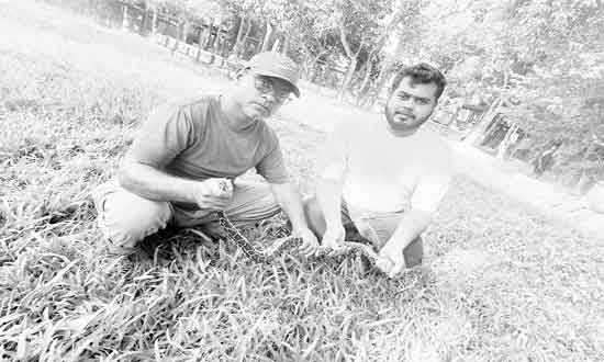 মৌলভীবাজার জেলার শ্রীমঙ্গল উপজেলায় গত এক সপ্তাহে পাঁচটি অজগর সাপ উদ্ধার করেছে বাংলাদেশ বন্যপ্রাণী সেবা ফাউন্ডেশন। নোয়াগাঁও ও ইছবপুর গ্রাম ও হাইল হাওরের এলাকা থেকে এসব অজগর উদ্ধার করা হয়। গতকাল শুক্রবার দুপুর ১টা ৩০ মিনিটের সময় শ্রীমঙ্গল উপজেলার হাইল হাওরের ভূবন বেরী এলাকায় মাছ ধরার জাল তুলতে গিয়ে জালের ভেতর একটি সাপ আটকে রয়েছে দেখতে পেয়ে জেলেরা তৎক্ষণাৎ বাংলাদেশ বন্যপ্রাণী সেবা ফাউন্ডেশন কর্তৃপক্ষকে ফোনে অবগত করলে ফাউন্ডেশনের পরিচালক স্বপন কুমার দেব সজলসহ অন্যান্যরা ঘটনাস্থলে পৌঁছে মাছ ধরার জাল থেকে অজগর সাপটিকে উদ্ধার করে অক্ষত অবস্থায় বস্থায় বের করে নিয়ে আসেন।