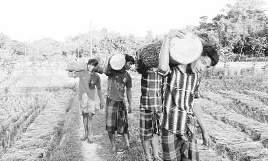 মীরসরাই (চট্টগ্রাম) : গাছের খন্ড নিয়ে যাচ্ছে কিছু উপজাতি শ্রমিক -সংবাদ