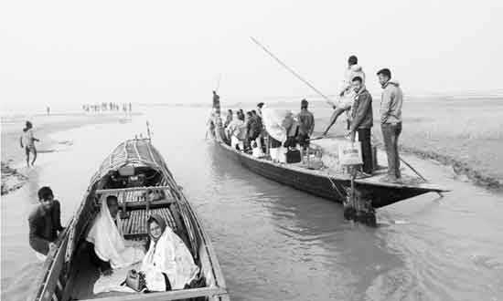 সিরাজগঞ্জ : শুষ্ক মৌসুমে যমুনার শাখা নদীগুলো শুকিয়ে যাওয়ায় নৌকা চলাচলে ভোগান্তি -সংবাদ