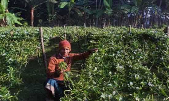 উপজেলা অতিরিক্ত কৃষি অফিসার অভিজিত কুমার বিশ্বাস বলেন,পুঁইশাক এক ধরনের লতাজাতীয় সবজি। পুঁইগাছের পাতা ও লতা শাক হিসেবে খাওয়া হয় বলে সচরাচর একে পুঁইশাক হিসাবে উল্লেখ করা হয়। পুঁইশাক সাধারণত বসতবাড়ির আঙিনার বেড়ায় বা মাচায় জন্মাতেপারে।এ ছাড়া ব্যাবসায়িক ভিত্তিতেও এর চাষ করা হয়। দেশে, এই শাক প্রচুর পরিমাণে চাষ করা হয়।লাল ও সবুজ পুঁইশাক নামের এই শাকের দুটি জাত আছে। এ ছাড়া বাংলাদেশে কৃষি গবেষণা কর্তৃক উদ্ভাবিত বারি-১, বারি-২ নামের দুটি জাত আছে।পুঁইশাক নরম বহু শাখাযুক্ত উদ্ভিদ। এর মাংসল লতা দৈর্ঘ্যে ১০ মিটার পর্যন্ত বাড়তে পারে। পাতা মোটা, মসৃণ, রসালো এবং মৃদু সুগন্ধ যুক্ত। লাভ আকৃতির পাতার দৈর্ঘ্য মাঝারি।লাল পুঁইয়ের পূর্ণবয়স্ক কান্ড লালচে বেগুনি রঙের হয়, যা লাল পুঁই ডাঁটা হিসেবে পরিচিত। পুঁইয়ের ফুল সাদা ও লাল। ফল মটরের দানার মতো। পাকা ফল বেগুনি রঙের।মার্চ-এপ্রিল মাসে পুঁইশাকের বীজ বপন করতে হয়। পুইশাকের ডোগা রোপন করলে অতি সহজেই গাছের জন্ম সৃষ্টি হয়। পুইশাক ক্ষেতে জো না থাকলে পানি সেচ দিতে হয় আর উক্ত পানি সেচ যেন কোন ভাবেই জলাবদ্ধতার সৃষ্টি না করে সে বিষয়ে সতর্ক থাকতে হবে। ইতিপূর্বে শুধুমাত্র স্থানীয় পর্যায়ের সার অর্থাৎ গোবর খইল, বর্তমান সময়ে বানিজ্যিক ভাবে পূইশাক চাষে ইউরিয়া, টিএসপি সহ বিভিন্ন ধরনের রাসায়নিক সার ব্যবহার করা হচ্ছে। সব মিলে পুইশাক চাষে অনেকে আর্থিক ভাবে স্বচ্ছলতার মুখ দেখছেন।বীজ ও শাখা কলম দিয়ে পুঁইয়ের চাষ করা যায়।