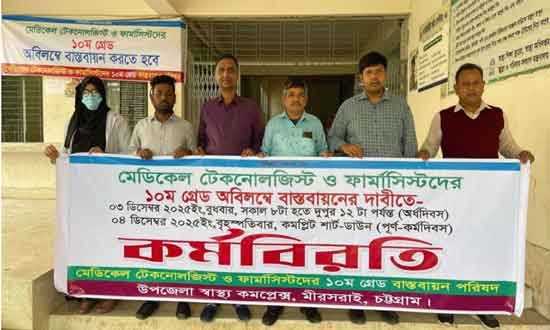 মীরসরাই (চট্টগ্রাম) : ১ম গ্রেডের দাবিতে মেডিকেল টেকনোলজিস্ট দের কর্মবিরতি পালন -সংবাদ