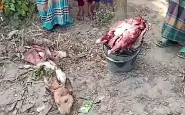 পুলিশের ঊর্ধ্বতন কর্মকতারা জানান, গত ১৫ ফেব্রুয়ারি ভোর সাড়ে ৫টার দিকে নওগাঁর ধামইরহাট থানাধীন মঙ্গলবাড়ি বাজারের হঠাৎপাড়া গ্রামের কসাই এন্তাজ ও মো. দুলু স্থানীয় আলু খেতে একটি ধূসর বর্ণের কুকুর জবাই করে। মাংস নিয়ে বাড়ি গেলে পার্শ¦বর্তী ঘরের বুলুন নাহারের সন্দেহ হয়।