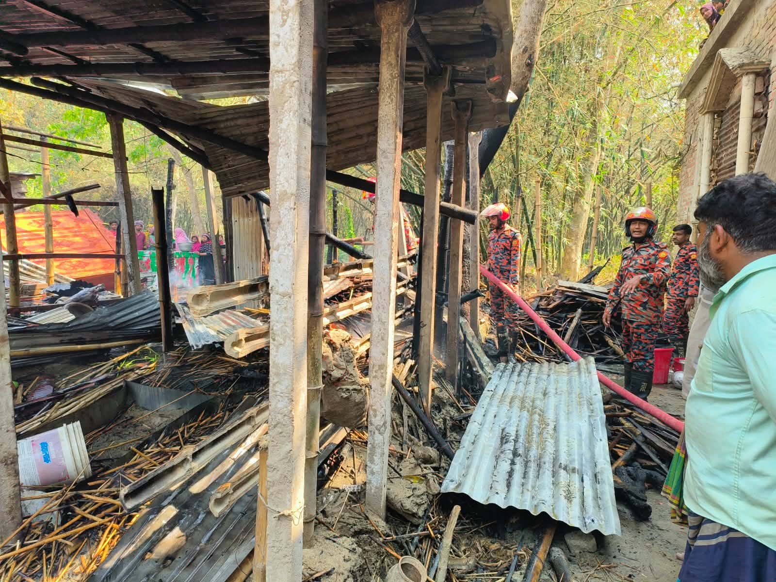 ঘটনার সময় রবিউল ইসলাম বাড়িতে ছিলেন না। তিনি জানান, “আমি সকালে বাজারে ছিলাম। খবর পেয়ে বাড়িতে এসে দেখি, বসবাসের ঘরসহ সবকিছু আগুনে পুড়ে গেছে।”