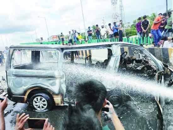 ফায়ার সার্ভিস ভাঙ্গা স্টেশনের ইনচার্জ আবু জাফর বলেন, ‘খবর পেয়েই আমরা ঘটনাস্থলে ছুটে আসি। তখন গাড়িটি জ্বলছিল। ভেতরেই নারী-শিশুসহ সাত জন মারা গেছে। গাড়িটির সামনের অংশে আগুন ধরেছিল। রেলিংয়ে ধাক্কা লেগেই আগুন ধরে যায়। পরে আগুন নিয়ন্ত্রণে আনা হলে ভেতর থেকে সাত জনের লাশ উদ্ধার করা হয়।’
