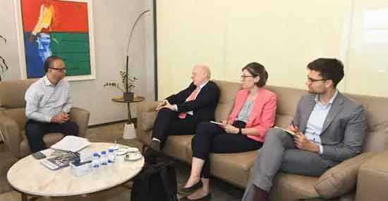 গত সোমবার সাক্ষাৎকালে বিজিএমইএ সভাপতি মাহমুদ হাসান খান বাংলাদেশের তৈরি পোশাক শিল্পের সামগ্রিক চিত্র তুলে ধরেন। তিনি বৈশ্বিক বাজারে প্রতিযোগী সক্ষমতা ধরে রাখতে শিল্পটির প্রধান অগ্রাধিকারগুলো ব্যাখ্যা করেন, যার মধ্যে রয়েছে- ডিউ ডিলিজেন্স পরিপালনের জন্য প্রস্তুতি, নন-কটন পোশাকের ওপর জোর দিয়ে পণ্যের বৈচিত্র্যকরণ এবং ডিকার্বনাইজেশন উদ্যোগ।