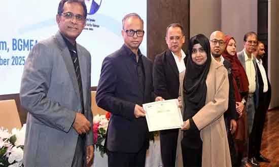 গতকাল বৃহস্পতিবার এ মন্তব্য করেন বাংলাদেশ পোশাক প্রস্তুতকারক ও রপ্তানিকারক সমিতির (বিজিএমইএ) সভাপতি মাহমুদ হাসান খান। বিজিএমইএ কমপ্লেক্সে আয়োজিত এক অনুষ্ঠানে এ কথা বলেন তিনি। বাংলাদেশ সরকারের স্কিলস ফর ইন্ডাস্ট্রি কমপিটিটিভনেস অ্যান্ড ইনোভেশন প্রোগ্রামের আওতায় সফলভাবে প্রশিক্ষণ সম্পন্নকারী এক হাজার ১৭৫ জন প্রশিক্ষণার্থীকে সার্টিফিকেট প্রদান উপলক্ষে এ অনুষ্ঠান আয়োজন করা হয়।