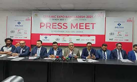 রোববার,(২৩ নভেম্বর ২০২৫) পল্টনে ঢাকা রিপোর্টার্স ইউনিটিতে (ডিআরইউ) আয়োজিত সংবাদ সম্মেলনে এ তথ্য জানিয়েছে বিসিএমইএ। সংগঠনটি জানায়, সিরামিক এক্সপোতে বাংলাদেশসহ ২৫টি দেশ থেকে ১৩৫টি প্রতিষ্ঠান ও ৩০০ ব্র্যান্ড অংশ নেবে। তাদের পাশাপাশি এ খাতের ৫০০ জন আন্তর্জাতিক প্রতিনিধি ও ক্রেতা অংশ নেবেন।