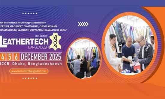 চামড়া শিল্প, জুতা তৈরির যন্ত্রপাতি, জুতার বিভিন্ন উপকরণ, রাসায়নিক ও আনুষঙ্গিক পণ্যের সমাহার নিয়ে শুরু হলো আন্তর্জাতিক প্রদর্শনী ‘লেদারটেক বাংলাদেশ ২০২৫’। এগারতম বারের মতো আয়োজিত এ আসর বৃহস্পতিবার রাজধানীর আন্তর্জাতিক কনভেনশন সিটি বসুন্ধরার (আইসিসিবি) এক্সপো ভিলেজে শুরু হয়েছে।
