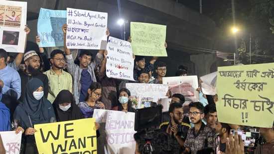 শনিবার সন্ধ্যায় ঢাকা বিশ্ববিদ্যালয়ের রাজু ভাস্কর্যের পাদদেশে আয়োজিত মানববন্ধনে অংশ নেওয়া শিক্ষার্থীরা এরশাদ হালিমের দ্রুত ও কঠোর শাস্তির দাবি জানায়। কর্মসূচিতে অংশগ্রহণকারীরা ‘হ্যাং-হ্যাং, রাপিস্ট’, ‘জ্বালোরে-জ্বালো, আগুন জ্বালো’, ‘ধর্ষকের গদিতে, আগুন জ্বালাও একসাথে’, ‘অ্যাকশন-অ্যাকশন, ডাইরেক্ট অ্যাকশন, হালিমের বিরুদ্ধে ডাইরেক্ট অ্যাকশন’সহ নানা স্লোগান দেন।