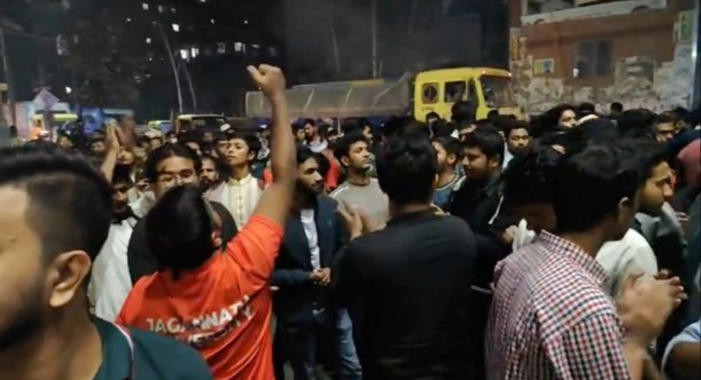 বৃহস্পতিবার (১৮ ডিসেম্বর) রাত ১১ টার দিকে শিক্ষার্থীরা বিশ্ববিদ্যালয়ের প্রধান ফটকের সামনে থেকে মিছিল করে রায়সাহেব বাজার মোড় হয়ে তাঁতিবাজার মোড়ে গিয়ে অবস্থান নেন। সেখানে ১৫-২০ অবস্থানের পর সড়ক ছেড়ে দিয়ে আবারও শাঁখারিবাজার মোড় সংলগ্ন বিশ্বজিৎ চত্বরে এসে বিক্ষোভ করেন।