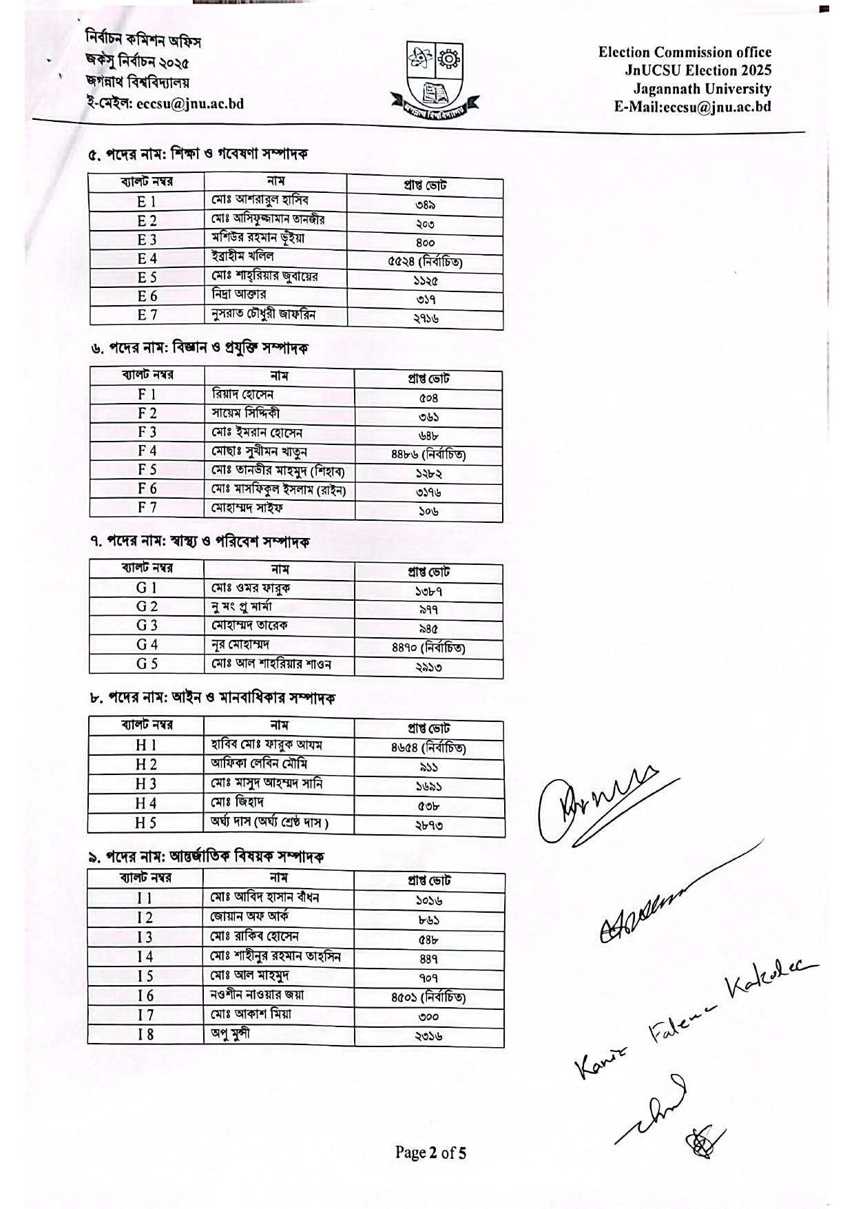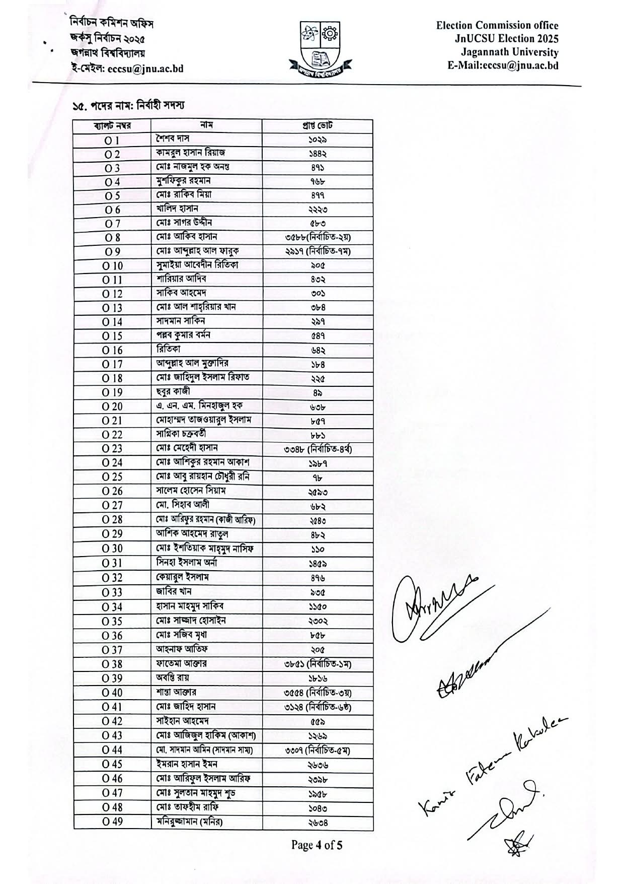 বুধবার দিবাগত রাত ১ টার দিকে প্রধান নির্বাচন কমিশনার অধ্যাপক মোস্তফা হাসান চূড়ান্ত ফল ঘোষণার পর ভোটের পূর্ণাঙ্গ তালিকা প্রকাশ করা হয়।