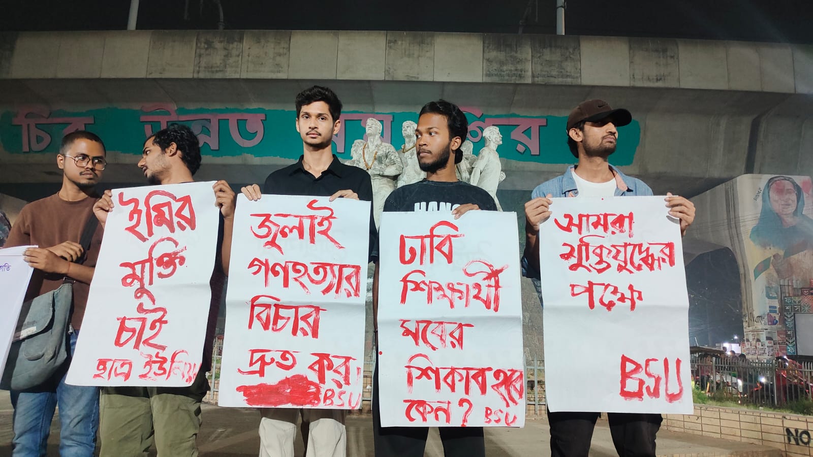 সোমবার সন্ধ্যায় ঢাকা বিশ্ববিদ্যালয়ের টিএসসির রাজু ভাস্কর্যের পাদদেশে এক বিক্ষোভ সমাবেশ থেকে তারা ইমির নিঃশর্ত মুক্তি ও দেশে আইনের শাসন বজায় রাখার দাবি জানান।
