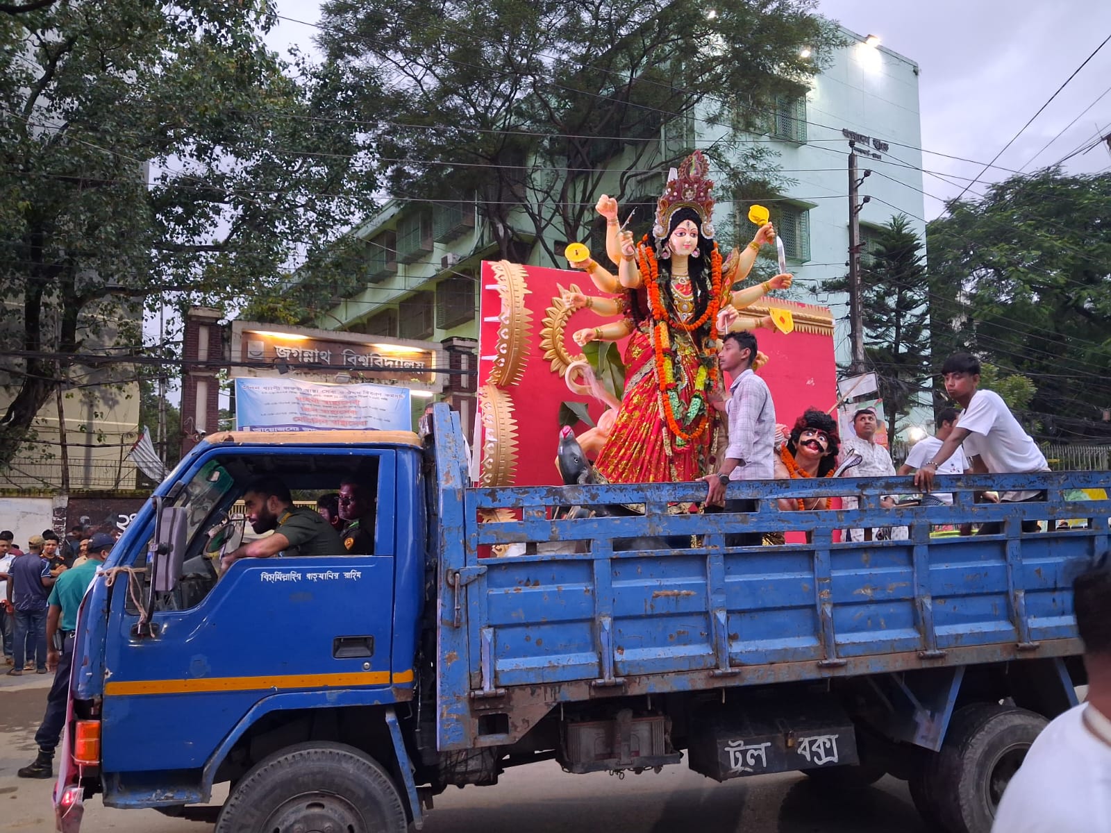 নৌ পুলিশের সদরঘাট থানার ভারপ্রাপ্ত কর্মকর্তা মো. সোহাগ জানান, ঘাট ও আশপাশের প্রতিটি পয়েন্টে সেনাবাহিনী, র্যাব, পুলিশ ও আনসার মোতায়েন আছে। একাধিক ট্রলার ও স্পিডবোটে টহল জোরদার করা হয়েছে। দুপুর তিনটায় শুরু হওয়া বিসর্জন কার্যক্রম চলবে মধ্যরাত পর্যন্ত।