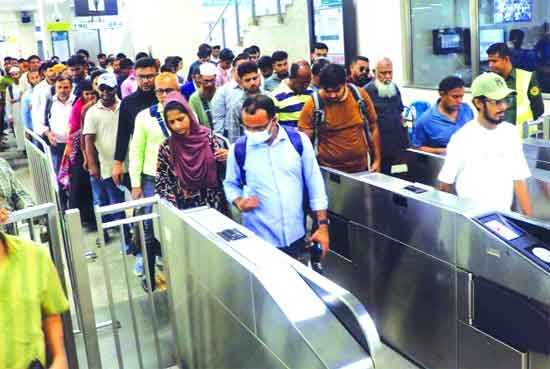 সোমবার উত্তরা থেকে মতিঝিল মেট্রোরেল চলাচল আবার শুরু হয়েছে। টিকেট সংগ্রহে যাত্রীদের ভিড় -সংবাদ