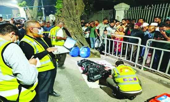 পুলিশের রমনা বিভাগের উপ-কমিশনার মাসুদ আলম আরো জানান, ‘লাশের মাথার অংশটুকু স্পষ্ট বোঝা যায়। মুখে দাঁড়িও রয়েছে।’ আশপাশের সিসিটিভি ফুটেজ সংগ্রহ করে ঘটনাটি কীভাবে ঘটেছে, তা খতিয়ে দেখা হচ্ছে।