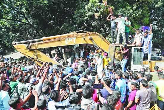 ধানমন্ডি ৩২ নম্বরে সেই বাড়ির অবশিষ্ট যা আছে তা গুঁড়িয়ে দিতে এক্সকেভেটর নিয়ে গিয়েছিলেন একদল লোক। তবে এবার পুলিশ ও সেনাদের বাধার মুখে পড়েন তারা -সোহরাব আলম