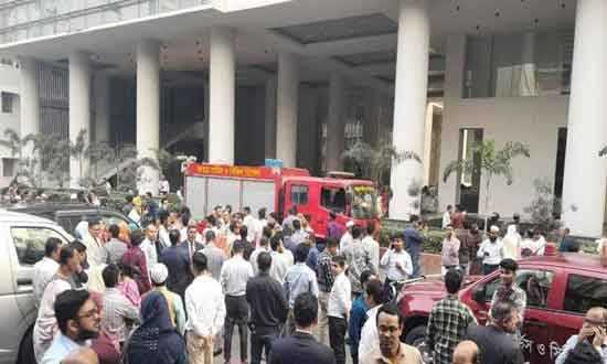 সচিবালয়ের নতুন ভবনে ধোঁয়া, আগুনের সতর্কতামূলক হুইসেলের শব্দে আতঙ্কে বিভিন্ন ভবন থেকে নেমে আসেন কর্মকর্তা-কর্মচারীরা। রোববার,(৩০ নভেম্বর ২০২৫) দুপুর আড়াইটার দিকে সচিবালয়ের নতুন ভবন (১ নম্বর ভবন) থেকে ধোঁয়া দেখা যায়। একইসঙ্গে ভবনজুড়ে বারবার বাজতে থাকে সতর্কতার হুইসেল। এর কিছুক্ষণ পরই ভবনটির ৯ তলায় লাগা আগুন নিভিয়ে ফেলার তথ্য দিয়েছে ফায়ার সার্ভিস।