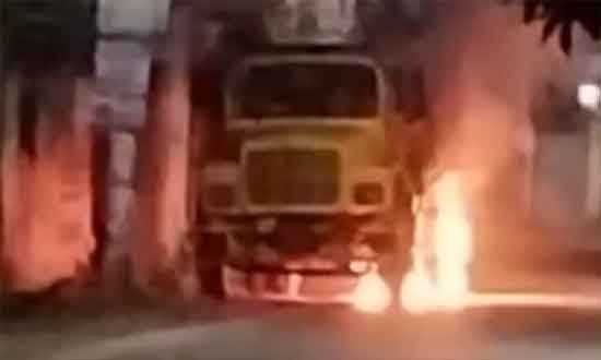 ৫১ সেকেন্ডের ওই ভিডিওতে আড়ুয়াপাড়া এলাকায় রাস্তার পাশে দাঁড়িয়ে থাকা একটি ট্রাকের পেছনের চাকায় দুই যুবক আগুন ধরিয়ে দেই। তাদের একজন মাথায় হেলমেট পরিহিত ছিলেন।