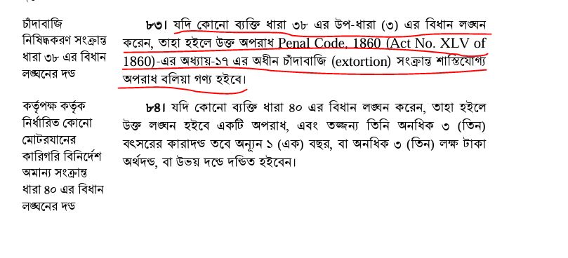 সড়কমন্ত্রীর এই বক্তব্য রাজনৈতিকভাবে যেমন আলোচনার জন্ম দিয়েছে, তেমনি আইনের দৃষ্টিতেও প্রশ্ন উঠেছে, সমঝোতার ভিত্তিতে তোলা অর্থ কি চাঁদাবাজি নয়? নাকি নির্দিষ্ট শর্তে তা বৈধ হতে পারে?এই বিতর্ক বোঝার জন্য দেখতে হবে সড়ক পরিবহন আইন, ২০১৮–এর ৩৮ ধারা কী বলছে। আর সেই ধারার সঙ্গে ফৌজদারি আইনের সম্পর্ক কোথায়।