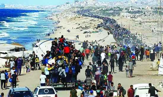 গাজার উত্তরাঞ্চল থেকে দক্ষিণে চলে যাওয়া ফিলিস্তিনিরা যুদ্ধবিরতি কার্যকর হওয়ার পর দলে দলে নিজ বাড়িঘরে ফিরছেন -এএফপি