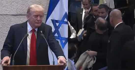 ইসরায়েলের পার্লামেন্ট নেসেটে যুক্তরাষ্ট্রের প্রেসিডেন্ট ডনাল্ড ট্রাম্প ভাষণ দেওয়ার সময় সদস্যরা হট্টগোল করে বাধা দিয়েছেন।
