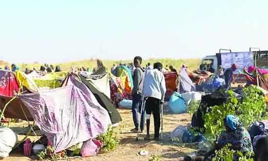 দারফুরের এল-ফাশের শহর থেকে পালিয়ে আসা বাস্তুচ্যুত লোকজন তাবিলায় অস্থায়ী তাঁবুর চারপাশে জড়ো হয়েছেন -এএফপি
