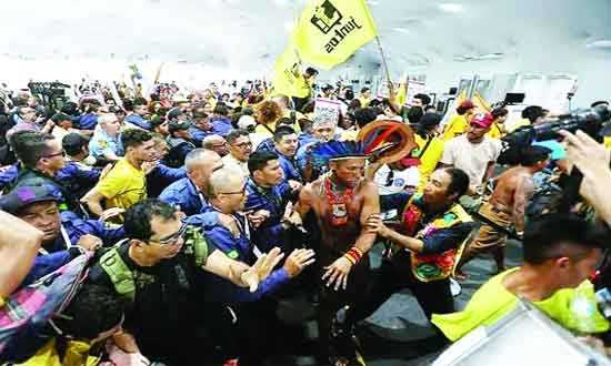 ব্রাজিলের আমাজন অঞ্চলের বেলেম শহরে জাতিসংঘের জলবায়ু-সংক্রান্ত সম্মেলন বা কপ৩০-এর সম্মেলনস্থলে সংঘর্ষের ঘটনা ঘটেছে। স্থানীয় সময় গতকাল মঙ্গলবার গভীর রাতে নিরাপত্তারক্ষীদের সঙ্গে সংঘর্ষে জড়ান বিক্ষোভকারীরা। এ সময় স্থানীয় আদিবাসী ও অ-আদিবাসী বিক্ষোভকারীদের একটি দল সম্মেলনস্থলেও হামলা চালায়। তখন কয়েক ডজন নারী-পুরুষ দৌড়ে সম্মেলনস্থলের মেটাল ডিটেক্টর ভেদ করে ব্লু জোনে ঢুকে পড়েন। তাঁদের মধ্যে কয়েকজন উজ্জ্বল রঙের পালকের টুপি পরে ছিলেন।
