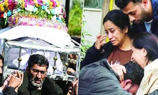 ইসলামাবাদে বিস্ফোরণে নিহতের লাশ নেওয়া হচ্ছে দাফনের জন্য (বাঁয়ে), নয়াদিল্লিতে মর্গের সামনে স্বজনদের আহাজারি (ডানে) -এএফপি