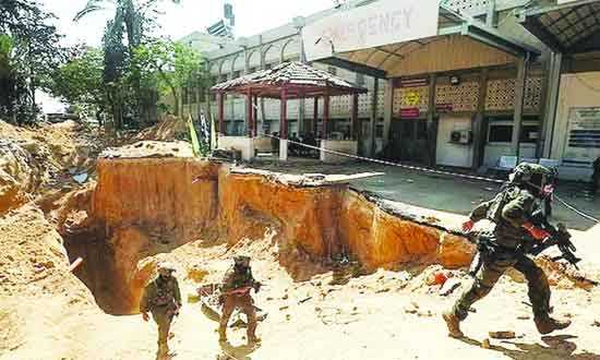 গাজা উপত্যকার খান ইউনিসে ইউরোপীয় হাসপাতালের নিচ দিয়ে তৈরি করা একটি সুড়ঙ্গ থেকে বেরিয়ে আসছেন ইসরায়েলি সেনারা -এএফপি