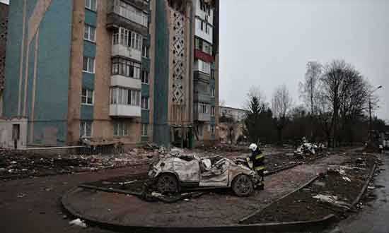 ইউক্রেইনের তেরনোপিলে এক অ্যাপার্টমেন্ট ভবনে রুশ ক্ষেপণাস্ত্র হামলার পর ক্ষতিগ্রস্ত এক গাড়ি খতিয়ে দেখছেন দমকল বাহিনীর এক কর্মী।