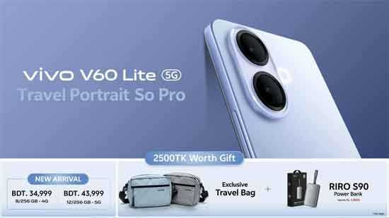 আকর্ষণীয় অফারের সাথে বাজারে এসেছে ভিভোর নতুন স্মার্টফোন ভি৬০ লাইট। ফাইভজি এবং ফোরজি দুটি সংস্করণে ফোনের দাম যথাক্রমে ৪৩,৯৯৯ টাকা ও ৩৪,৯৯৯ টাকা। এর সাথে ক্রেতারা পাচ্ছেন ২৫০০ টাকার বিশেষ গিফট প্যাক জেতার সুযোগ, যাতে রয়েছে ট্রাভেল ব্যাগ এবং রিরো এস৯০ পাওয়ার ব্যাংক। এছাড়া, ক্রেডিট কার্ড ছাড়া ৭,০০০ টাকা থেকে মোমো কিস্তিতে ফোনটি কেনা যাবে।