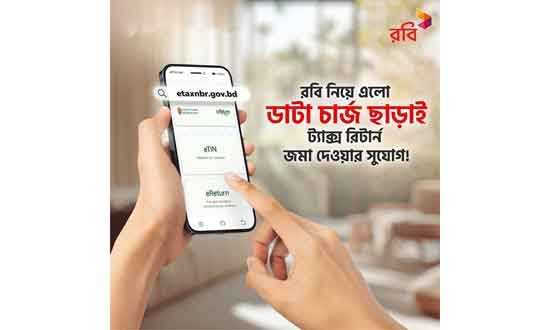 রবি আজিয়াটা পিএলসি গ্রাহকদের জন্য জাতীয় রাজস্ব বোর্ডের (এনবিআর) ই-রিটার্ন দাখিলের ওয়েবসাইট www.etaxnbr.gov.bd বিনা ডেটা খরচে ব্যবহারের সুযোগ চালু করেছে। অনলাইনে আয়কর রিটার্ন দাখিলের প্রক্রিয়াকে আরও সহজ ও সুবিধাজনক করতে রবির এই বিশেষ উদ্যোগ নেওয়া হয়েছে। এর ফলে ই-রিটার্ন জমা দেওয়ার সময় রবি গ্রাহকদেও আর মোবাইল ডেটা ফুরিয়ে যাওয়ার চিন্তা করতে হবে না। বিশেষ এই সুবিধা ই-রিটার্ন দাখিলের নির্ধারিত সময়সীমা পর্যন্ত কার্যকর থাকবে।