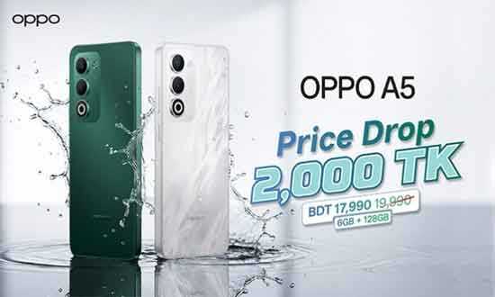 প্রযুক্তি ব্র্যান্ড অপো তাদের নতুন স্মার্টফোন অপো এ৫ (৬ জিবি + ১২৮ জিবি) এখন নতুন দাম ১৭,৯৯০ টাকায় নিয়ে এসেছে। ডিভাইসটির আগের দাম ছিল ১৯,৯৯০ টাকা।