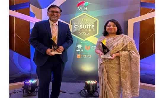 গ্রামীণফোনের চিফ করপোরেট অ্যাফেয়ার্স অফিসার (সিসিএও) তানভীর মোহাম্মদ ‘চিফ করপোরেট অ্যাফেয়ার্স অফিসার অব দ্য ইয়ার ২০২৫’ এবং চিফ মার্কেটিং অফিসার (সিএমও) ফারহা নাজ জামান ‘চিফ মার্কেটিং অফিসার অব দ্য ইয়ার ২০২৫’ এর সম্মানে ভূষিত হয়েছেন। দক্ষ নেতৃত্বের স্বীকৃতি হিসেবে বাংলাদেশ ব্র্যান্ড ফোরাম আয়োজিত বাংলাদেশ সি-স্যুট অ্যাওয়ার্ডস ২০২৫ এ তাদের এই সম্মাননা প্রদান করা হয়। উল্লেখ্য, বাংলাদেশ সি-স্যুট অ্যাওয়ার্ডস এমন করপোরেট নির্বাহীদের স্বীকৃতি প্রদান করে যারা কৌশলগত দূরদৃষ্টি, দৃঢ়তা ও উৎকর্ষতার মাধ্যমে বিভিন্ন শিল্প খাতে নতুন মানদন্ড স্থাপন করেন।