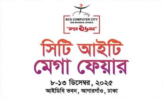 আগামী ৮-১৩ ডিসেম্বর রাজধানীর আগারগাঁওয়ের আইডিবি ভবনে অনুষ্ঠিত হতে যাচ্ছে সিটি আইটি মেগা ফেয়ার ২০২৫। মেলায় যেকোনো প্রযুক্তিপণ্য কিনলেই থাকবে বিশেষ মূল্যছাড় ও পুরস্কার।