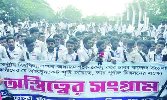 ঢাকা কলেজে উচ্চ মাধ্যমিক বহাল রাখা এবং কলেজের ‘স্বকীয়তা’ রক্ষার দাবিতে বিক্ষোভ করেছে কলেজটির একদল শিক্ষার্থী।
