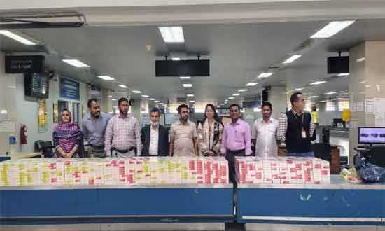 শনিবার, ০৬ ডিসেম্বর ২০২৫সকাল ১১টার দিকে বিমানবন্দরের এরাইভাল হলের লস্ট অ্যান্ড ফাউন্ড কর্নারের পাশ থেকে এসব লাগেজ উদ্ধার করা হয়। জব্দ হওয়া সিগারেট প্রতি কার্টন ১১ হাজার ২৫০ টাকা মূল্য ধরে মোট ৯০ লাখ টাকা রাজস্ব আদায় করা হয়েছে।