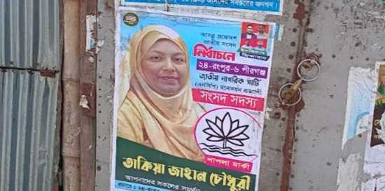 এরই মধ্যে তাকিয়া জাহান চৌধুরী এনসিপির হয়ে মনোনয়ন প্রত্যাশী হিসেবে পোস্টারে ‘শাপলা প্রতীক’ ব্যবহার করে প্রচার চালাচ্ছেন। যদিও তিনি দলের কোনো আনুষ্ঠানিক পদ-পদবি ধারণ করেন না।