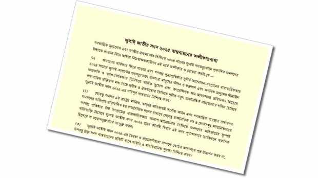 তবে সনদ বাস্তবায়নের আইনি ভিত্তি ‘অস্পষ্ট’ থাকায় অনুষ্ঠানটির বিরোধিতা করেছে এনসিপি। দলটির পক্ষ থেকে জানানো হয়েছে, আইনি বৈধতা ছাড়া এ ধরনের স্বাক্ষর কেবল আনুষ্ঠানিকতা মাত্র।