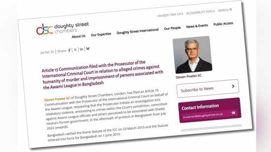 ব্রিটিশ আইনজীবী স্টিভেন পাওলস লন্ডনের ডাউটি স্ট্রিট চেম্বার্সের পক্ষে আওয়ামী লীগের প্রতিনিধিত্ব করে এই আবেদন দাখিল করেছেন। চেম্বারের এক বিজ্ঞপ্তিতে বিষয়টি জানানো হয়েছে।